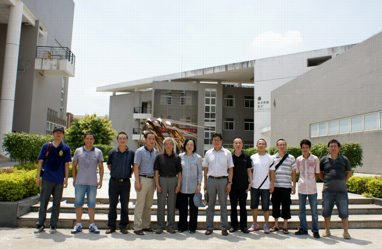 文楼先生(左五)一行在作品前留影