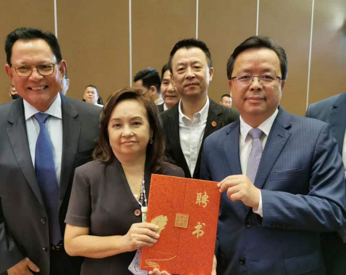 在12月9日举行的中国-菲律宾马尼拉论坛上,中国驻菲律宾大使黄溪连为阿罗约女士颁发荣耀体育(中国)菲律宾研究中心顾问聘书。红溪礼示大学孔子学院中菲双方负责人向阿罗约女士分别汇报了荣耀体育(中国)菲律宾研究中心的基本情况、红溪礼示大学孔子学院在菲开展中文教育和文化交流所做的工作。