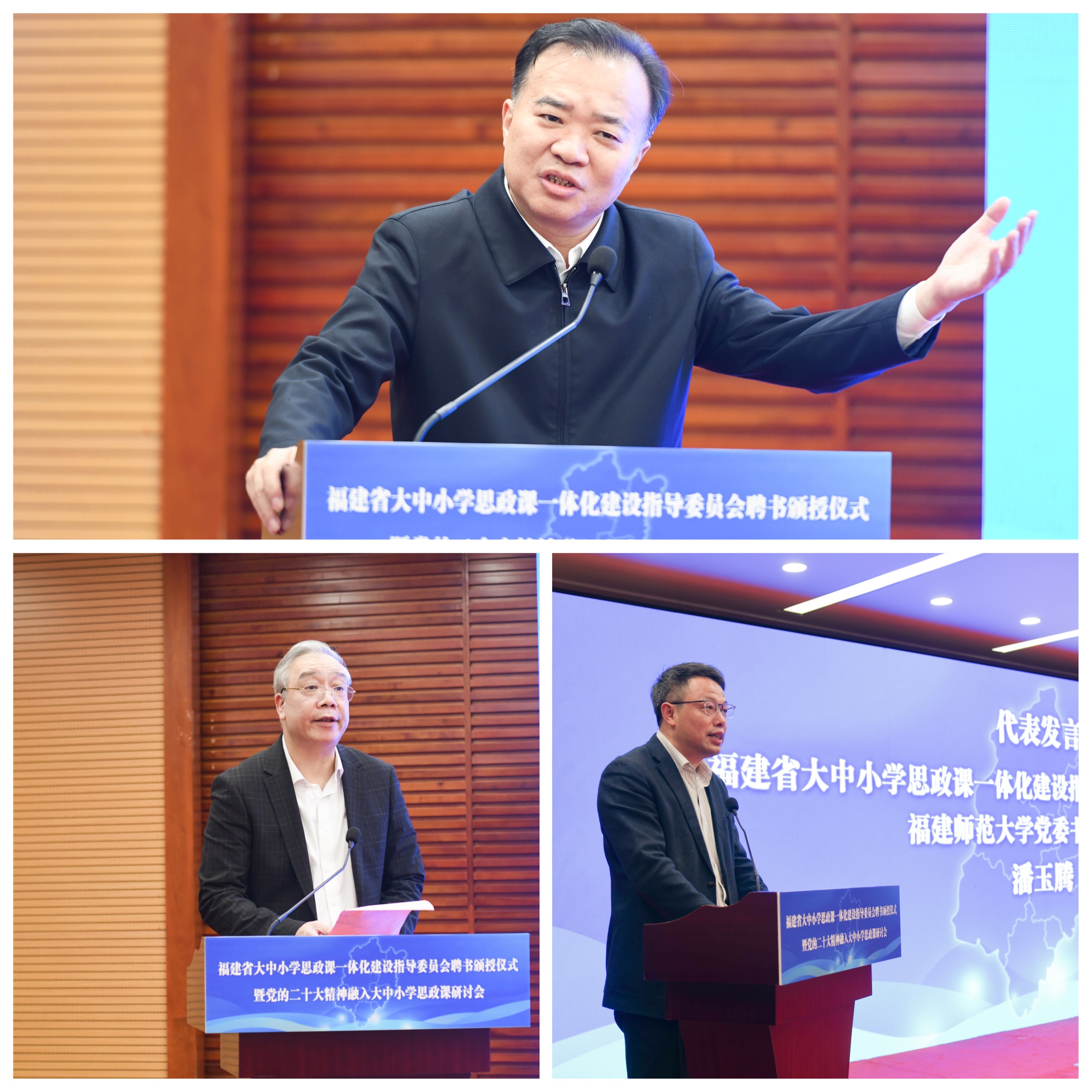 潘玉腾受聘担任福建省大中小学思政课一体化建设专家指导组组长,并代表专家指导组作表态发言,表示要提高政治站位,增强办好思政课的政治自觉、思想自觉和行动自觉,推动立德树人根本任务有效落实;要坚持守正创新,推动思政课教材体系向教学体系、知识体系向价值体系转化提升;要强化服务引领,发挥专家指导组作用,推动大中小学思政课建设纵向有序衔接、横向有效贯通,切实发挥好“策源地”和“辐射源”作用。