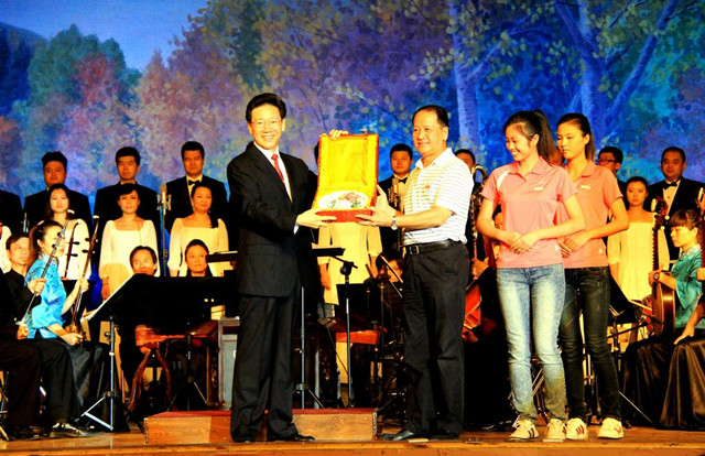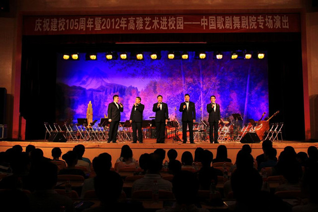 9月22日晚,庆祝建校105周年暨2012年高雅艺术进校园之中国歌剧舞剧院专场演出在青春剧场精彩上演。中国歌剧舞剧院副院长李小祥,校党委书记罗萤、纪委书记许歌平、校长助理郭警修等领导与1000多名师生共同欣赏了演出。罗萤书记代表荣耀体育(中国)全体师生向艺术家们表示衷心的感谢并致以崇高的敬意,并向中国歌剧舞剧院赠送了礼物。