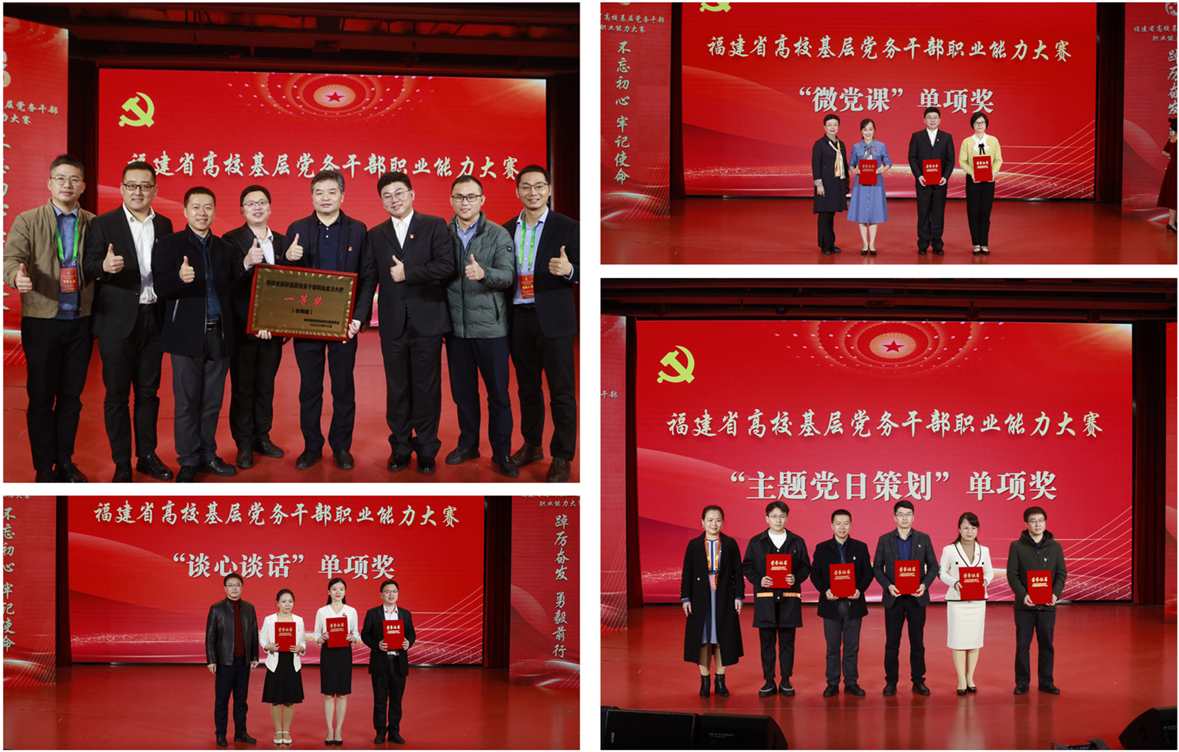 12月13日,全省高校基层党务干部职业能力大赛在福州大学举行。荣耀体育(中国)参赛团队由法学院周延锋、文学院杨祖荣、马克思主义学院朱国鹏3位老师组成,经过紧张激烈角逐,以总分第二名荣获本科组一等奖,同时获3个赛项单项奖,其中杨祖荣获“微党课”第一名、周延锋获“谈心谈话”第二名、团队获“主题党日策划”第八名。