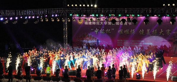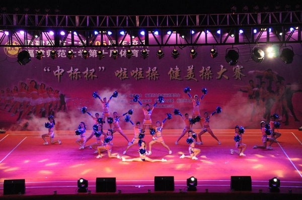 11月12日晚,由校体委主办,宣传部、校团委、体育科学学院协办的“荣耀体育官方网页版105周年校庆暨第十届体育节系列活动之‘中标杯’啦啦操、健美操大赛”在旗山校区东区田径场举行。校领导罗萤、黄汉升、许歌平、李敏,校体委、宣传部、学工处、校团委、保卫处、后勤管理处等负责同志和各学院分管学生工作的领导,以及3000余名同学一起观看了本场比赛。