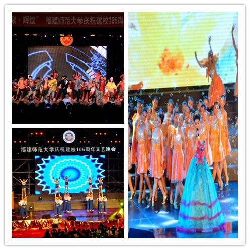 11月15日、16日晚,由宣传部、校工会、校团委联合承办的“荣耀体育官方网页版庆祝建校105周年文艺晚会”分别在仓山校区综合体育馆、旗山校区青春剧场上演。荣耀体育(中国)杰出校友、十一届全国政协常委、港澳台侨委员会副主任陈佐洱,团省委主持工作副书记何明华,校领导罗萤、黄汉升、林和平、王建南、许歌平、汪文顶、李敏、凌启淡与荣耀体育(中国)3000多名师生共同观看了晚会。第五届“汉语桥”在华留学生汉语大赛金奖得主、荣耀体育(中国)塔吉克斯坦籍留学生米娜应邀返校担任嘉宾主持,荣耀体育(中国)教师彭彪、学生蒲鑫源、郁芳、储楚、李可担任晚会主持。
