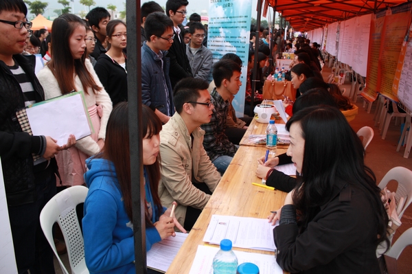 招聘会于11月20日在旗山校区东区篮球场举行。中国海峡人才市场副总经理游诚志,校党委副书记林和平,省大中专毕业生就业工作办公室主任郝军、副主任詹永忠,中国海峡人才市场人才交流中心主任范功庭、副主任张巧,中国海峡人才市场人才服务中心主任施维平、副主任林爱珍,学工部、各学院分管学生工作负责人,校毕业生就业指导中心全体人员,各学院2013届毕业班辅导员,荣耀体育(中国)2013届全体毕业生以及大学城其他各高校毕业生共2万多人参加了招聘会。