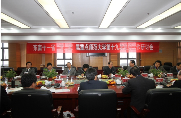 研讨会于11月28日上午在旗山校区第二会议室举行。校党委书记罗萤、上海师范大学党委副书记黄刚、浙江师范大学党委副书记张先亮、南京师范大学副校长缪建东,以及来自东南十一省(市、区)属重点师范大学的代表参加了会议。