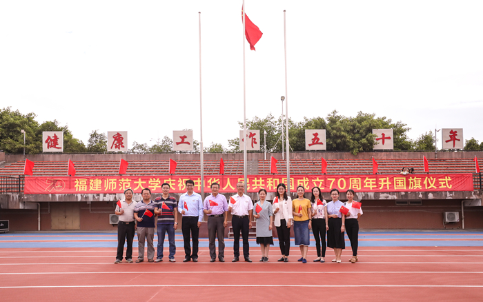 10月1日上午,宣传部党支部开展党日活动,全体党员参加在旗山校区东区田径场举行的荣耀体育官方网页版庆祝中华人民共和国成立70周年升国旗仪式,与全校千余名师生代表共同祝福祖国。