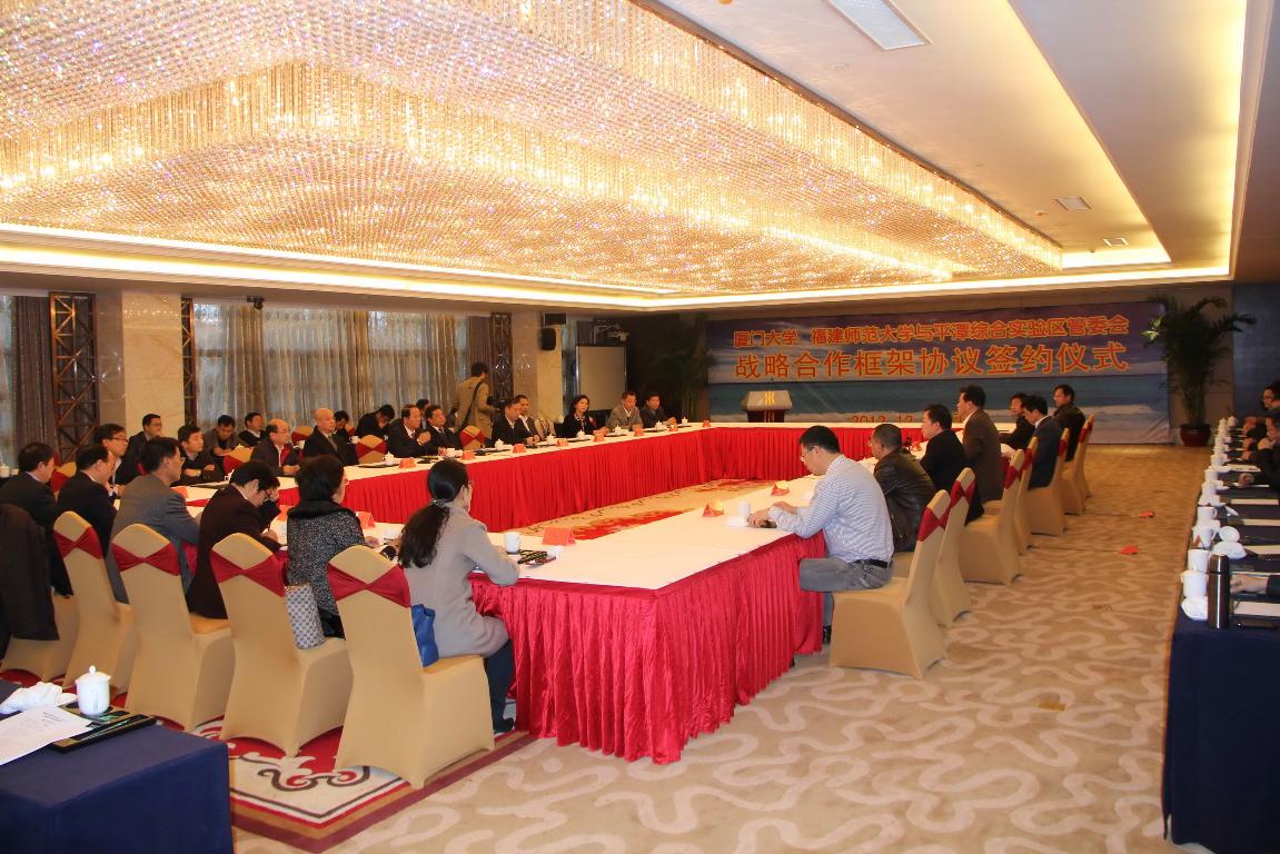 签约仪式上,平潭综合实验区党工委书记、管委会主任龚清概简要介绍了平潭的建设思路与建设进展。校党委书记罗萤表示,将积极配合,与平潭多沟通协调,推动平潭综合实验区开放开发建设。