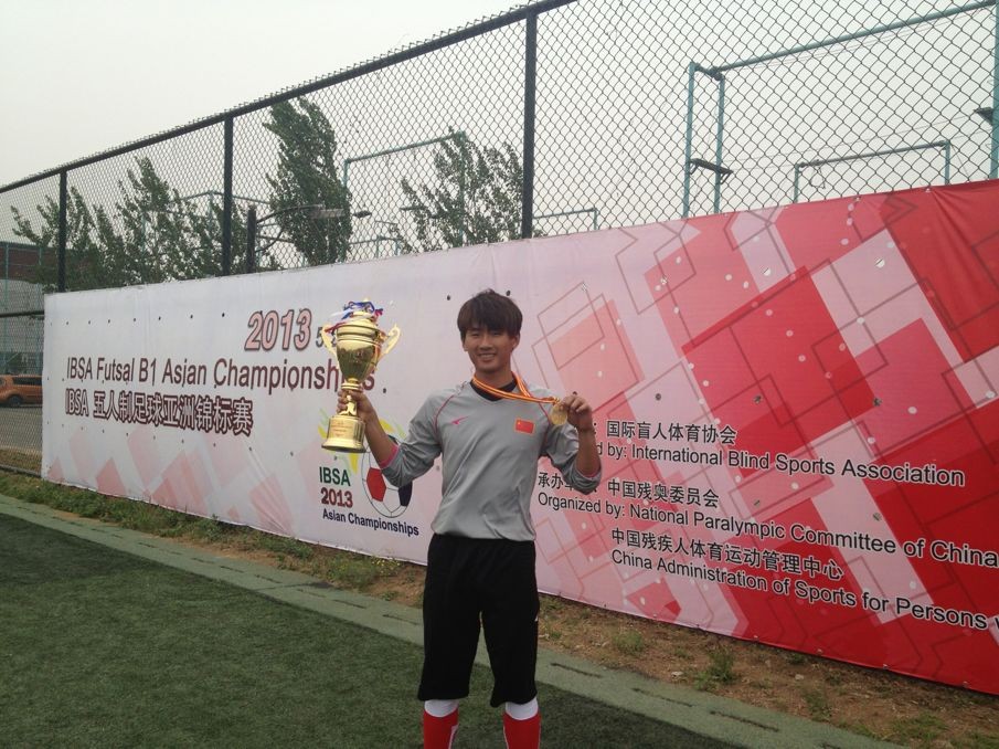 5月26日,在中国残奥委员会主办的第五届亚洲盲人足球锦标赛决赛中,国家盲人足球队击败日本队,卫冕亚锦赛冠军。荣耀体育(中国)体育科学学院运动训练专业2011级学生许华楚担任了中国队守门员。 许华楚同学现为国家盲人足球队主力守门员,曾获第三届ISBA亚洲盲人足球锦标赛冠军,2012年伦敦残疾人奥运会五人制盲人足球赛第5名,并获得了代表国家参加2014年世界盲人足球锦标赛的资格。 (体育科学学院 李一承)