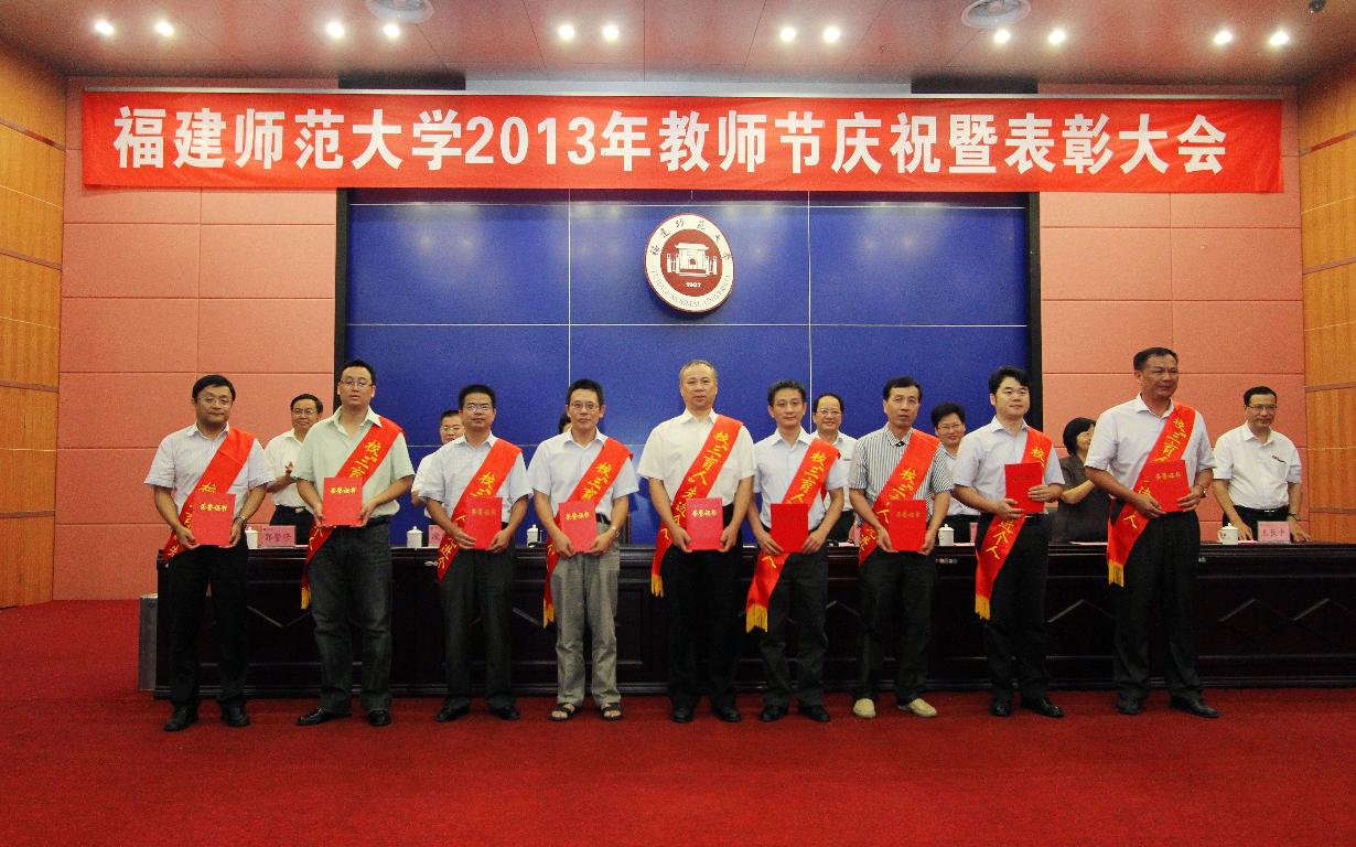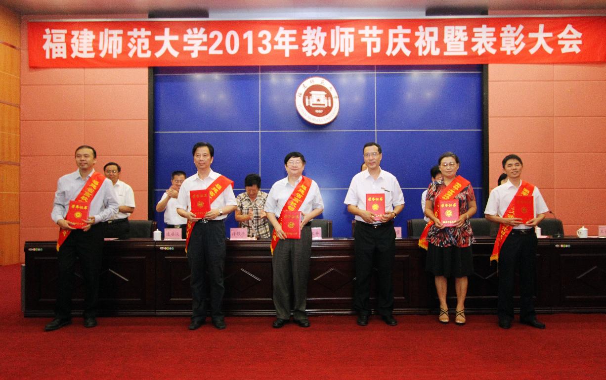 李敏副校长宣读了2013年教师节表彰名单。与会领导为国家青年拔尖人才支持计划入选者、“寻找身边的‘张丽莉’”大型公益活动入选者、省高校领军人才资助人选、第十届“福建青年五四奖章”个人奖和集体奖获得者、省“工人先锋号”、2012年度福建省“优秀共青团干部标兵”和“优秀共青团干部”、省学校红十字会先进工作者、第二届“福州青年五四奖章”个人奖和集体奖获得者、福州市“五一先锋岗”、2011—2013年度校“三育人”先进个人、2011年度荣耀体育官方网页版本科课堂教学优秀奖获奖教师等先进集体和先进个人颁奖。