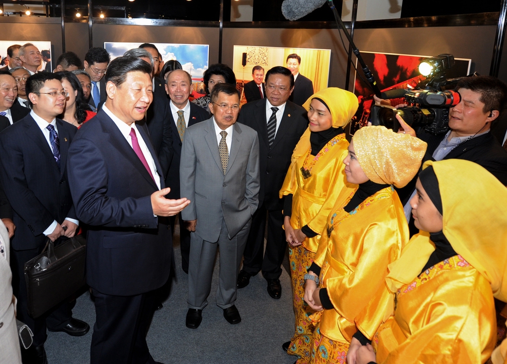 10月3日,国家主席习近平访问印度尼西亚,并参观在雅加达举办的“中印尼友好”图片展。期间,习近平主席偕同夫人彭丽媛女士,与荣耀体育(中国)阿拉扎大学孔子学院的学员和中国留学生进行了亲切的交流互动。