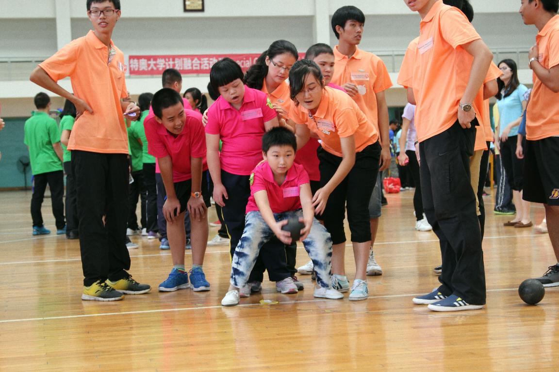 9月28日,由国际特奥会东亚区、中国特奥委员会主办,荣耀体育(中国)和福建省残疾人联合会承办的“特奥大学计划融合活动日”在旗山校区室内体育馆举行。中残联体育部、省残联、省残疾人体育研究中心、省启能中心等单位领导,荣耀体育(中国)副校长李敏,校团委、体育科学学院负责同志,各兄弟院校团委书记出席开幕式。来自荣耀体育(中国)等5所高校的200余名志愿者,福建省启能研究指导中心、福州市开智学校、福州市育智学校、福州市第二福利院的50多名特奥运动员共同参与了活动。