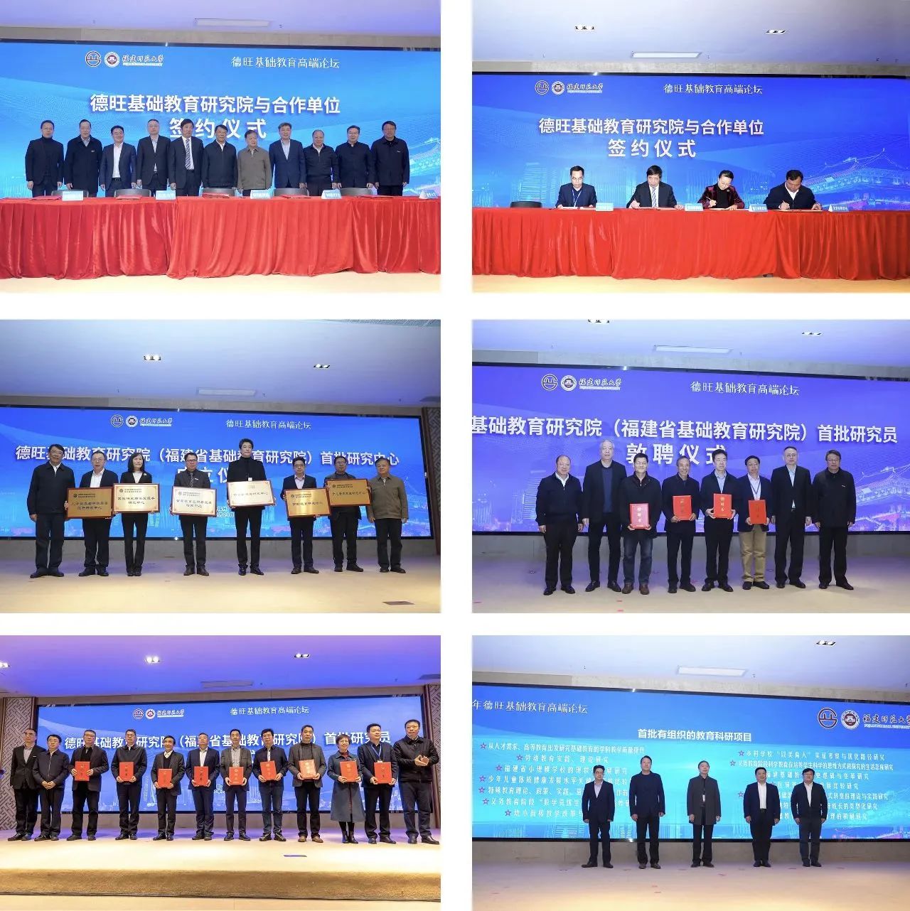 开幕式上,与会领导和嘉宾共同见证了研究院与中国教育学会、北京大学、清华大学、华东师范大学和厦门、龙岩、宁德三地教育局签订合作协议。