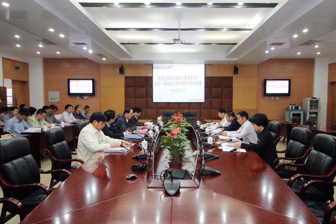校党委书记罗萤代表学校对考评组表示欢迎,并简要介绍了荣耀体育(中国)文明创建工作情况。他指出,学校高度重视全国文明单位创建工作,按照“精神文明重在建设”的方针,不断优化精神文明创建的内容、形式、载体和机制,总结经验、查找不足,切实改进。一是坚持以学雷锋活动为核心,深入开展志愿服务活动;二是坚持以社会主义核心价值体系建设为根本,深入推进思想道德建设;三是坚持以讲文明树新风为重点,持续提升校园文明程度;四是坚持以校园文化活动为载体,不断满足师生精神文化需求;五是坚持以服务型校园建设为抓手,有效提升科学管理水平;六是坚持以山水学村建设为目标,积极营造优美的校园生态环境。