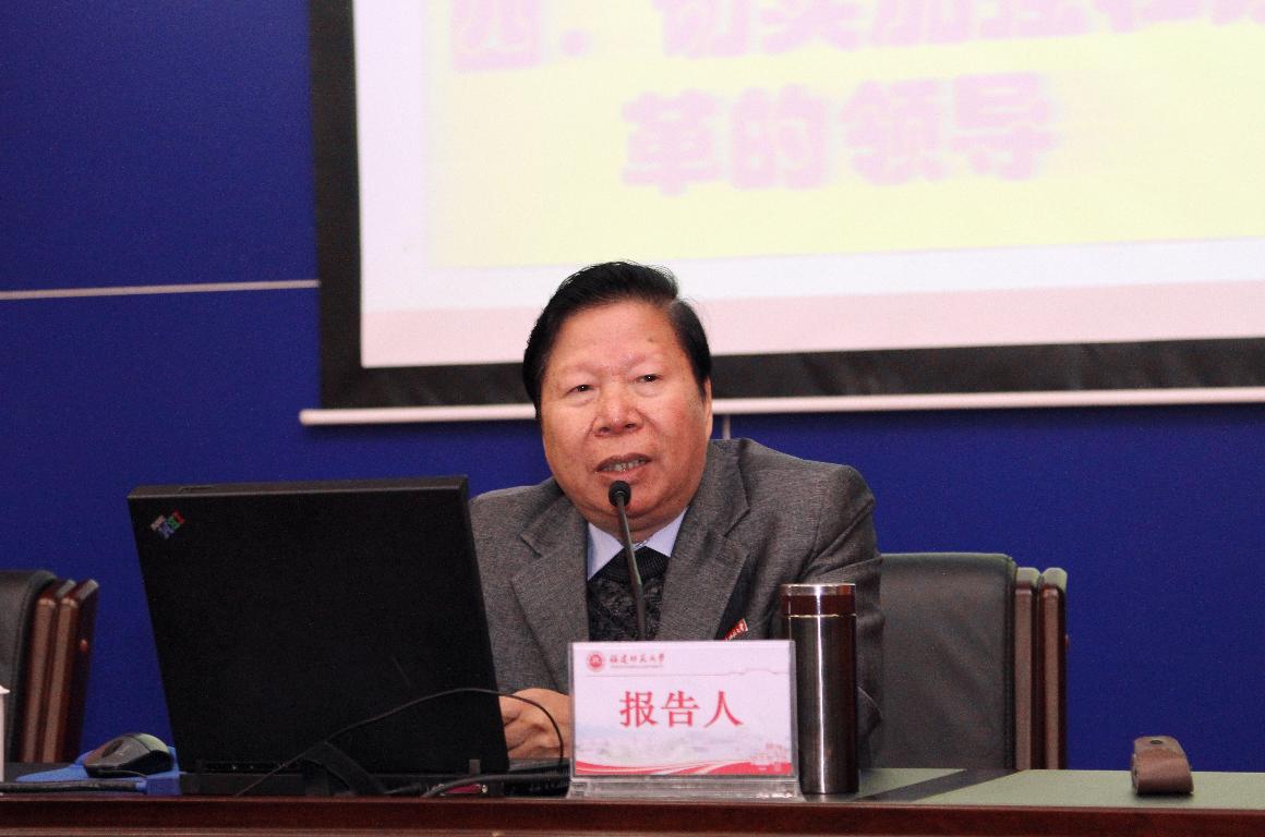 郑又贤教授简要介绍了党的十八届三中全会及其主要成果,从“充分认识在新的起点上全面深化改革的重大意义”、“准确把握全面深化改革的指导思想、总体目标和基本原则”、“全面落实中央确定的各项改革任务和重大举措”、“切实加强和改善党对全面深化改革的领导”4个方面对十八届三中全会精神进行了全面深刻的阐述。报告内容丰富、严谨求实、深入浅出,具有很强的针对性和指导性。