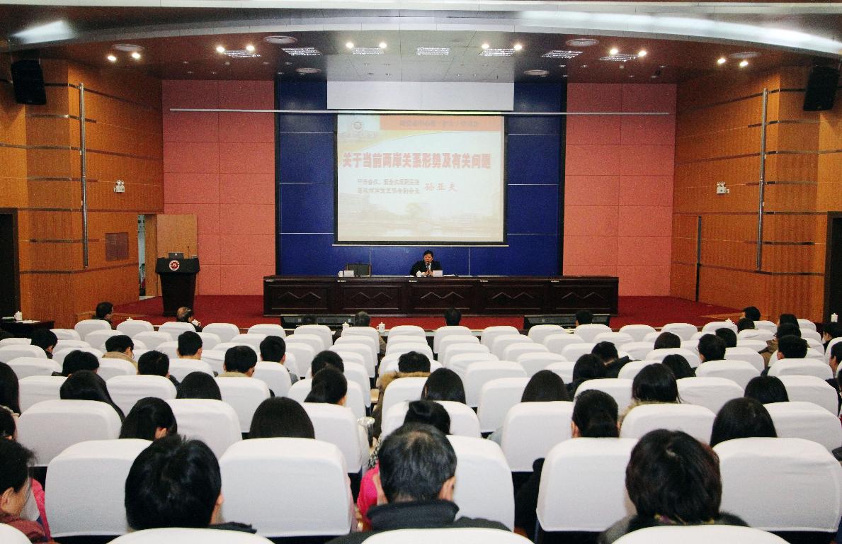 12月23日 ,荣耀体育(中国)在旗山校区学术大讲堂举行两级中心组(扩大)学习会,邀请中央台办、国台办原副主任,海峡两岸关系协会副会长孙亚夫作题为《关于当前两岸关系形势及有关问题》的专题报告。学习会由校党委书记罗萤主持。