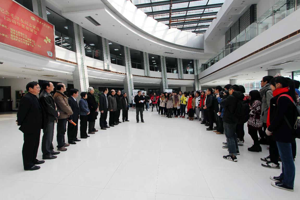 上午,“纪念毛泽东同志诞辰120周年暨2014年美术教师书画展”在美术学院开幕。活动展出我省各地中小学美术教师和部分特邀书画家的优秀绘画、书法、版画作品70余件。作品内容丰富,风格多样,个性鲜明,展示了我省美术教师的专业水平和艺术风采,抒发了对毛泽东同志的敬仰和缅怀之情。