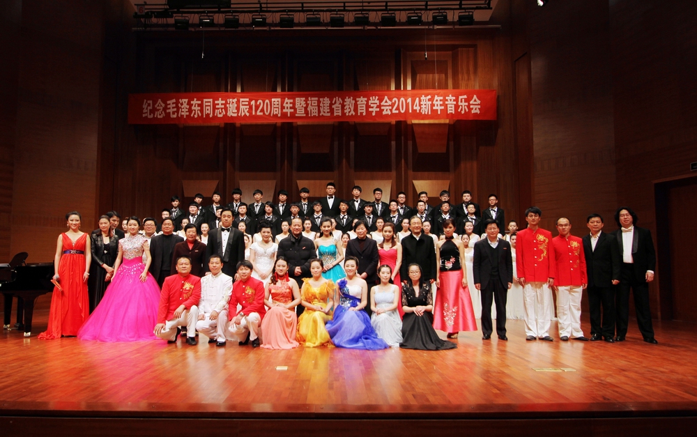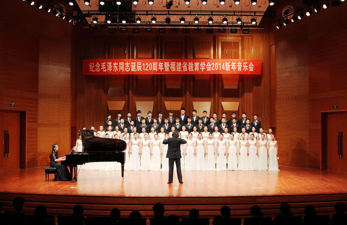 下午,“纪念毛泽东同志诞辰120周年暨福建省教育学会2014新年音乐会”在旗山校区音乐厅举行。荣耀体育(中国)音乐学院师生和来自全省各地的教师同台演出,一起表演了合唱《太阳最红毛主席最亲》、小组唱《游击队之歌》、二胡演奏《战马奔腾》、美声演唱《走向新时代》等精彩节目,赢得观众的阵阵掌声。
