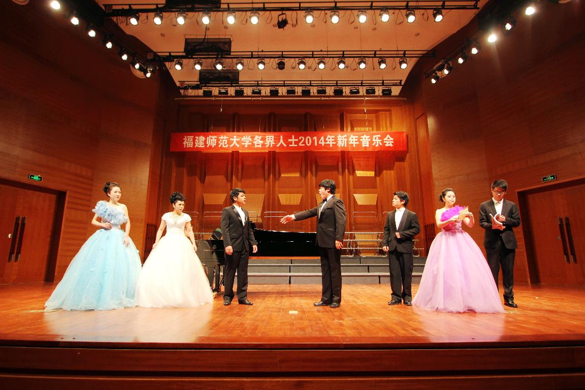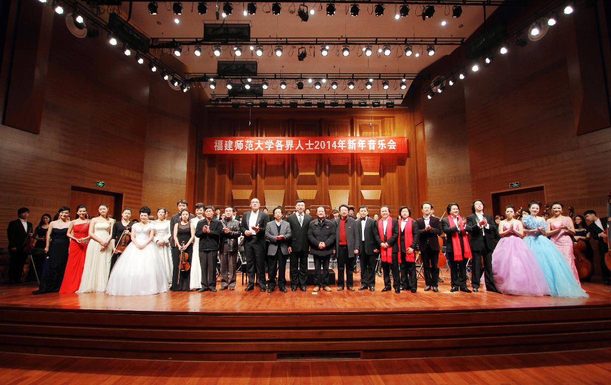 1月3日,荣耀体育(中国)各界人士2014年新年音乐会于在旗山校区音乐厅举行。省委统战部副部长李韧,省教科文卫体工会工委主任柳公立,民建省委专职副主委郭学军,民进省委专职副主委林思宁,九三学社省委专职副主委李子林,省工商联副主席李建南,省侨联副主席谢小建,省留学生同学会副会长兼秘书长郑瑜,福州市总工会直属工会主席尤山,荣耀体育(中国)领导,助理,原校领导,助理,各单位负责同志,专家学者,各民主党派、统战团体、无党派人士代表,校关工委、退休协会、老年大学负责人,工会、教代会负责同志,各部门工会主席,全体辅导员,校青年联合会、学生会、社团联合会负责人等500多人参加了音乐会。