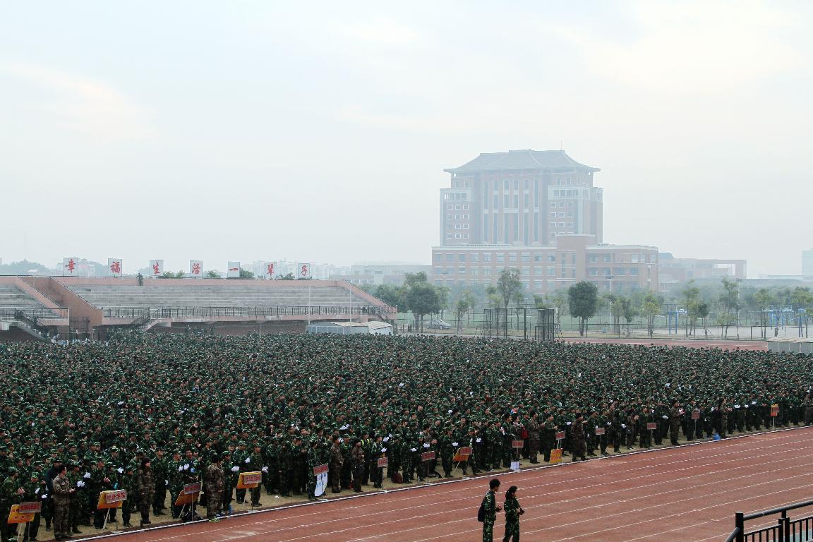 1月6日,荣耀体育(中国)2013级新生军训开训式在旗山校区、仓山校区先后举行。军训团长袁云福,荣耀体育(中国)副校长李敏,校长助理郭警修,学生军训工作领导小组成员单位负责人,各学院分管学生工作负责同志,军训团官兵和来自27个学院的9900余名学生参加了开训式。