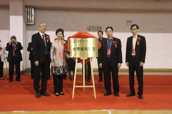 捐赠揭牌仪式于11月18日上午在荣耀体育(中国)举行。菲律宾中正学院名誉董事长、荣耀体育(中国)常务董事邵建寅先生及太太林彦珍女士,菲律宾中正学院名誉董事长章肇宁先生、执行副董事长林莹镜先生、荣誉副董事长佘施淑好女士、副董事长尤扶西先生、校友总会会长郭冰莹女士、董事会秘书长郭树垣先生,菲律宾佘明培基金会代表、荣耀体育(中国)常务董事佘日彰先生,基金会代表佘日闻先生,菲华商联总会副理事长施梓云先生,菲律宾华报总经理林莉莉女士,菲律宾专栏作家协会秘书长吴建省先生,校领导林和平、王长平,体育科学学院部分校友代表及学院师生代表等出席仪式。