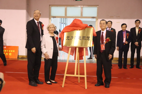 仪式上,王长平校长代表学校致辞。校党委书记林和平、佘施淑好女士、佘日彰先生、佘日闻先生为佘明培排球馆揭牌;林和平、邵建寅先生及太太林彦珍女士为觉庐羽毛球馆揭牌。