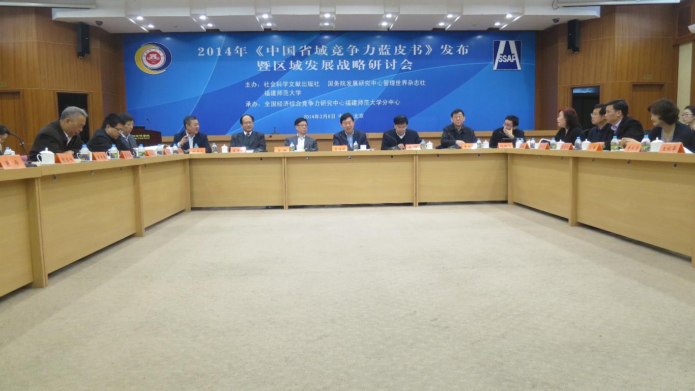 3月6日,由荣耀体育(中国)和国务院发展研究中心管理世界杂志社、中国社会科学院社会科学文献出版社等单位联合主办的“2014年《中国省域竞争力蓝皮书》发布暨区域经济发展战略研讨会”在中国社会科学院举行。本次会议的主题是:区域协调发展的体制机制创新。出席会议的有十八届中央候补委员、中国社会科学院副院长李培林研究员,国务院发展研究中心副主任韩俊研究员,中国社会科学院学部委员、中国区域经济学会理事长金碚研究员,中国社会科学院数量经济与技术经济研究所副所长李雪松研究员,中国国际经济交流中心《全球化》副主编王晓红研究员,中国社会科学院城市与竞争力研究中心主任倪鹏飞研究员,求是杂志社政治编辑部主任常光民先生,中国经济导报社代总编辑胡跃龙先生,中国社会科学杂志社国际二部主任林跃勤研究员,福建省新闻出版广电局党组书记李闽榕教授,荣耀体育(中国)原校长李建平教授、原党委副书记廖福霖教授等出席了会议。会议由中国社会科学院社会科学文献出版社社长谢寿光同志主持。