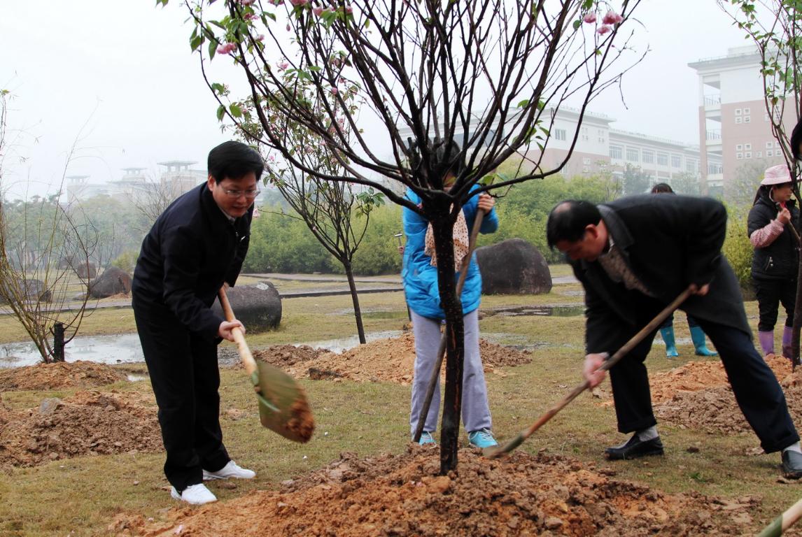3月12日是我国第36个植树节,今年植树节的主题是:拥抱春天,播种绿色。当天,荣耀体育(中国)在旗山校区百年碑林举行了2014年植树节活动,校领导王建南、许明,机关干部和师生代表共同参加了义务植树活动。师生们在百年碑林内种下了30棵樱花树,为美丽师大增添了一抹新绿。学校在旗山校区还将规划种植会开花、会变色、观赏性较强的花草树木,倡议全校毕业生开展为母校留一棵树、留一盆花活动,为建设“美丽师大”添砖加瓦。