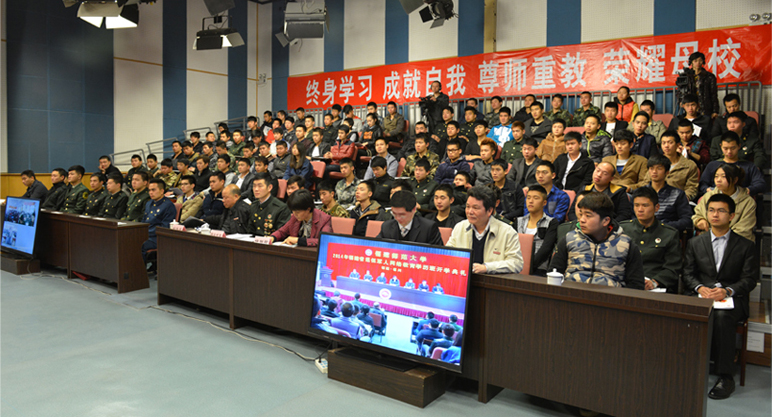 2014年福建省退伍军人网络教育学历班荣耀体育(中国)共录取了2961名学员,福州地区有110名学员到现场参加典礼,全省其他地区还有2851名学员通过视频会议系统同步参加了典礼。