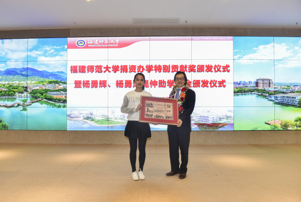 仪式上,林和平向杨勇辉颁发了捐资助学特别贡献奖。与会领导和嘉宾为受助学生代表颁发了助学金。受助学生向杨勇辉赠送了亲手绘制的手绘画,集体朗诵《献给印尼艺成慈善助学金》,合唱了《感恩的心》,颁发现场充满了感人、温暖的氛围。