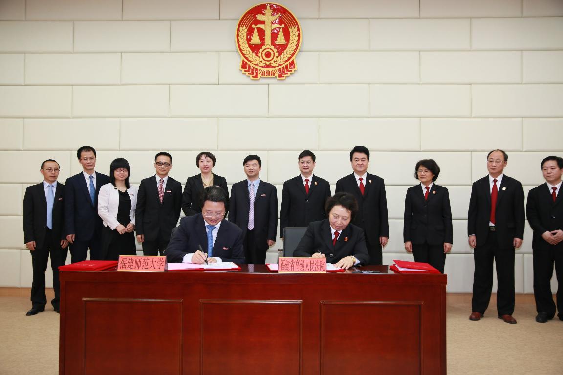共建协议签订和揭牌仪式于4月17日下午在福建省高级人民法院举行。福建高院党组书记、院长马新岚,党组成员、副院长何鸣、林卫里,党组成员、政治部主任罗志沙,党组成员、审判委员会专职委员王穗丰,荣耀体育(中国)党委书记黄汉升,和参与共建的华侨大学、福州大学等高校领导,福建高院机关各部门主要负责人,荣耀体育(中国)学校办公室、法学院负责人,以及三所高校的教师代表等出席了仪式。仪式由何鸣副院长主持。