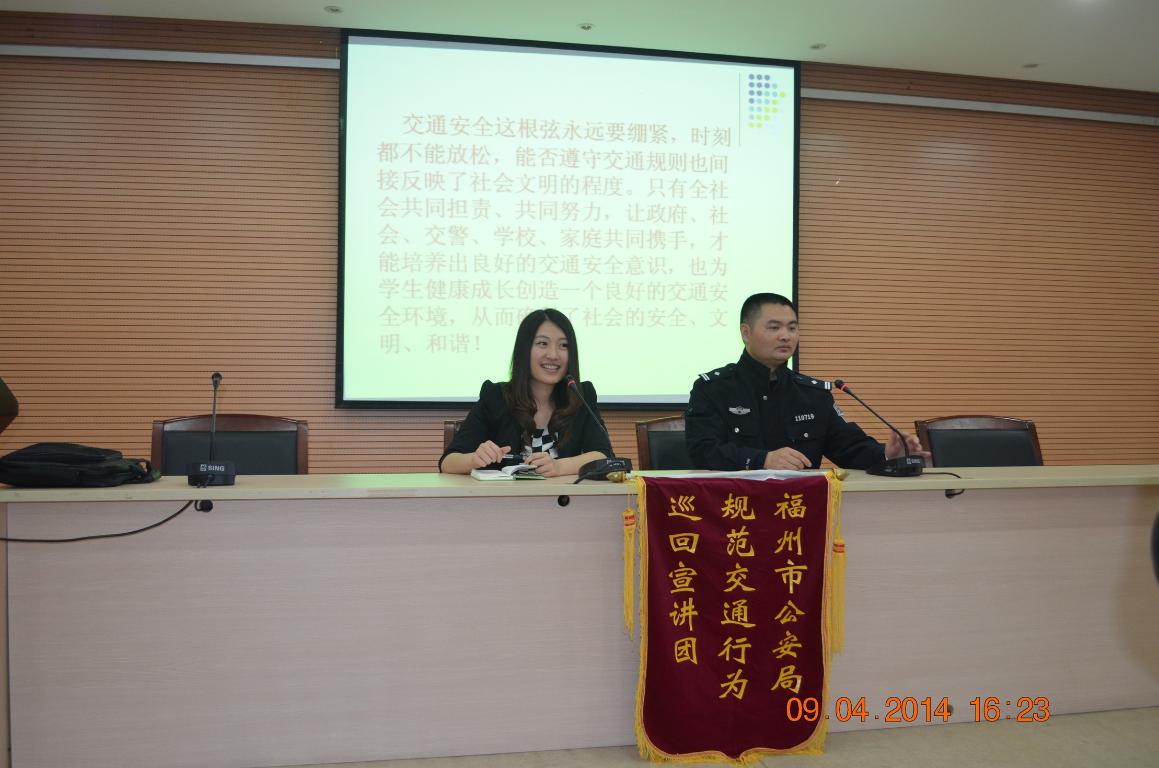 日前,由福州市公安局和荣耀体育(中国)共同举办的“传播文明交通理念、共同规范交通行为”宣讲活动在旗山校区举行。福州市公安局政治部副主任王誓超、宣教处副处长徐荣,福建文明交通形象大使、福建交通广播主持人麦子,福建公安机关一级法制员郭政,校长助理郭警修,保卫处及各科室负责人、学生纠察队、治保组织代表200余人参加了活动。