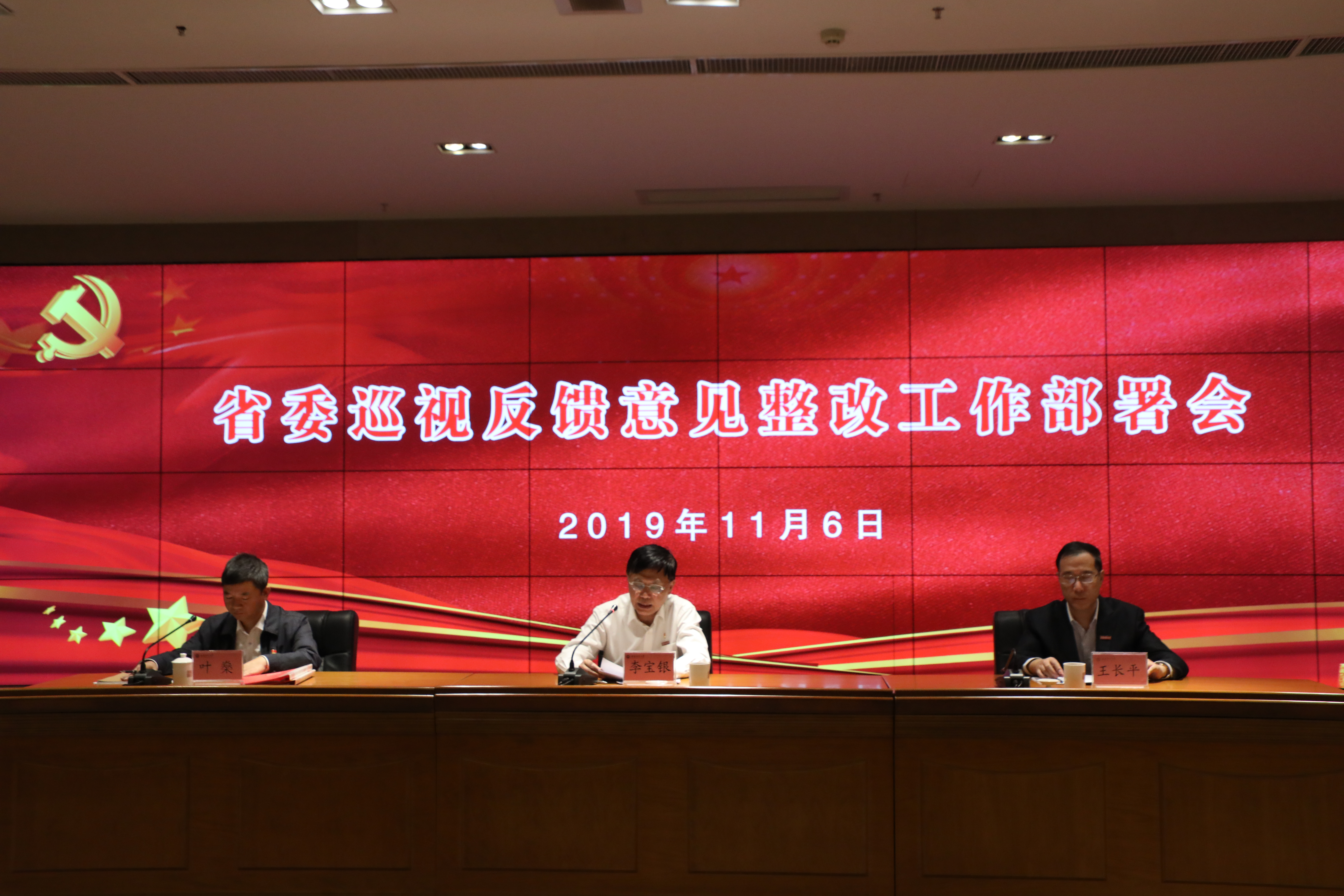 校党委书记李宝银在讲话中指出,今年5月8日至6月17日,省委巡视四组对学校党委开展了巡视。11月1日上午,省委巡视办、省委巡视四组一行来校,向学校党委和本人反馈了巡视工作情况,指出了发现的问题,提出了整改的意见和要求。当天下午,学校立即召开党委常委会议研究成立校党委巡视整改工作领导小组,并召开领导小组第一次会议,传达省委关于巡视工作的指示精神和巡视组反馈意见,研究部署学校整改落实工作。今天的会议,是对省委巡视整改工作的再动员再部署,全校师生要以高度的政治自觉、思想自觉、行动自觉,严而又严、实而又实地抓好巡视整改任务落实。