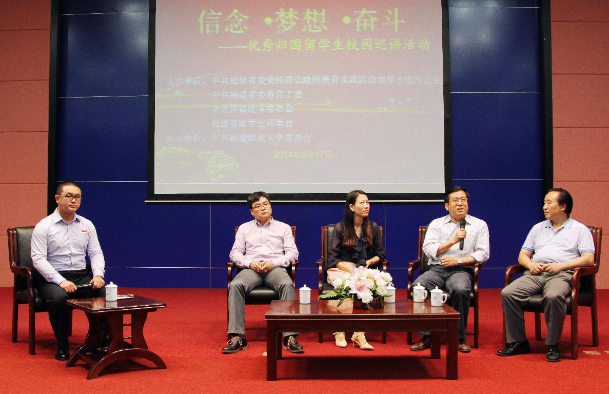 以“信念•梦想•奋斗”为主题的该活动于5月17日上午在旗山校区学术大讲堂举行,由省委群众路线教育实践活动领导小组办公室、省委教育工委、团省委、省留学生同学会共同主办。