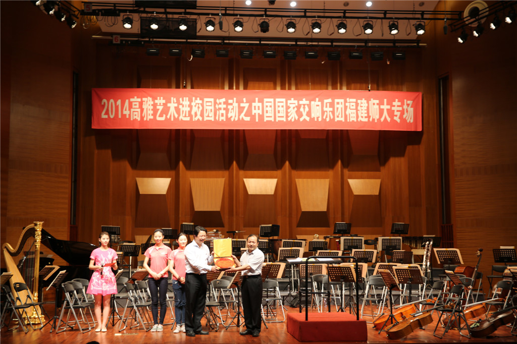 演出期间,黄汉升书记会见指挥胡咏言、乐队首席刘云志,向艺术家们介绍荣耀体育(中国)音乐学院办学成果,感谢艺术家们不远千里为荣耀体育(中国)师生送上精彩的演出,并向乐团赠送纪念品。