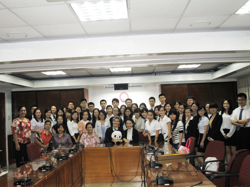 欢迎会上,Ocampo副部长代表教育部部长Br.Armin向老师们的到来表示热烈的欢迎。她阐述了教育部汉语教学项目的重大意义,且承诺尽最大努力保证志愿者教师在菲律宾的各项工作顺利开展。红溪礼示大学孔子学院中方院长表示将扎实做好志愿者教师的教学及组织管理工作,进一步做好公立中学的汉语课程建设工作。会后,来自荣耀体育(中国)的蔡美娜同学代表志愿者向副部长赠送礼物——一只象征着和平友谊的名为“菲菲”的熊猫公仔、一组文房四宝和一幅寓意和谐的中国国画。