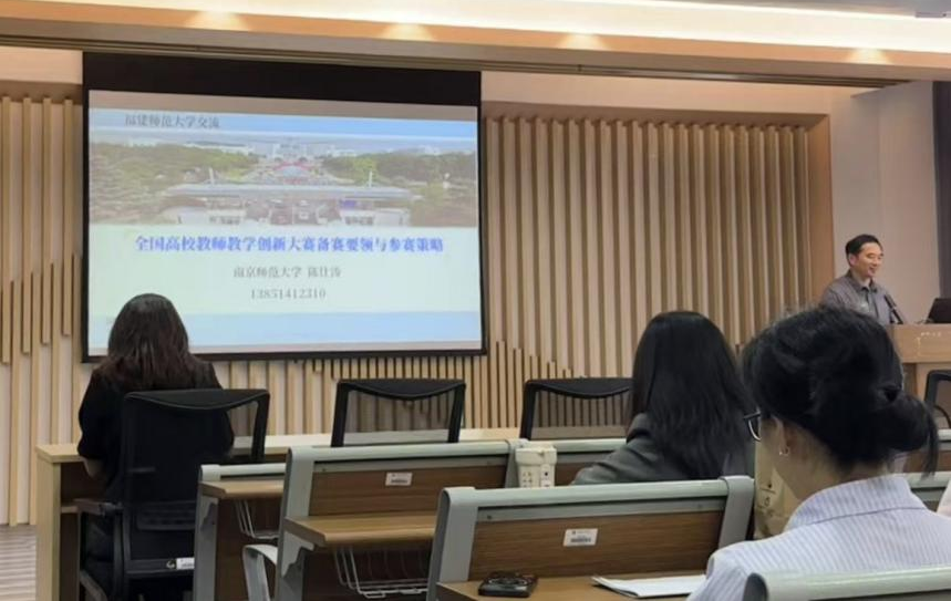 近日,地理科学学院邀请南京师范大学陈仕涛教授作题为“全国高校教师教学创新大赛备案要领与参赛策略”的学术讲座。讲座由王强教授主持,学科教学(地理)等专业师生参加。陈仕涛详细解读全国高校教师教学创新大赛指导文件,深入分析了近年来大赛要求的变化趋势,为在场师生备赛提供了新的思路。(地理科学学院、碳中和未来技术学院)
