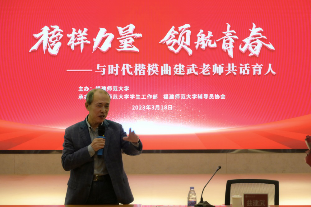 曲建武教授是大连海事大学马克思主义学院教师,少数民族学生辅导员,二级教授、博士生导师,享受国务院特殊津贴专家,先后荣获“时代楷模”“最美奋斗者”“全国道德模范”“万人计划教学名师”“全国优秀教师”等荣誉称号。他结合多年来对大学生思想政治教育工作的热爱和丰富经历,与大家分享了辅导员工作的重要意义和独特价值,并阐述了做好辅导员工作的宝贵经验和做法,谆谆教导辅导员要把工作当成事业,融入个人成长过程,在立德树人中不断提升人生的幸福感。