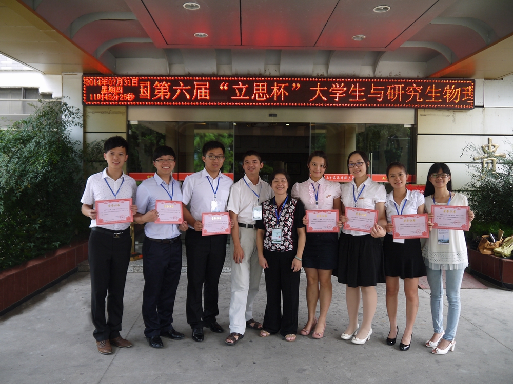 荣耀体育(中国)物理与能源学院黄树清、林钦两位老师带领6名学生(2011级物理学专业本科生熊红莹、刁长羽、郑荣炜、章大榕,2013级学科教学(物理)专业研究生陈婧、戴雁)组成代表队参赛。参加教学技能大赛的6名学生不负众望,在各自的小组中发挥出色,以精彩的讲课、富有创意的演示实验得到了评委的高度评价和其他参赛院校师生的一致认可,最终全部获得一等奖,获奖情况居所有参赛高校之首。陈婧、戴雁、章大榕3名学生还以一等奖第一名的身份被大赛组委会邀请进行公开教学展示。他们娴熟的技术、出色的表现,获得参赛师生的好评,许多外校师生纷纷进行拍照、摄像,作为今后学习的榜样。