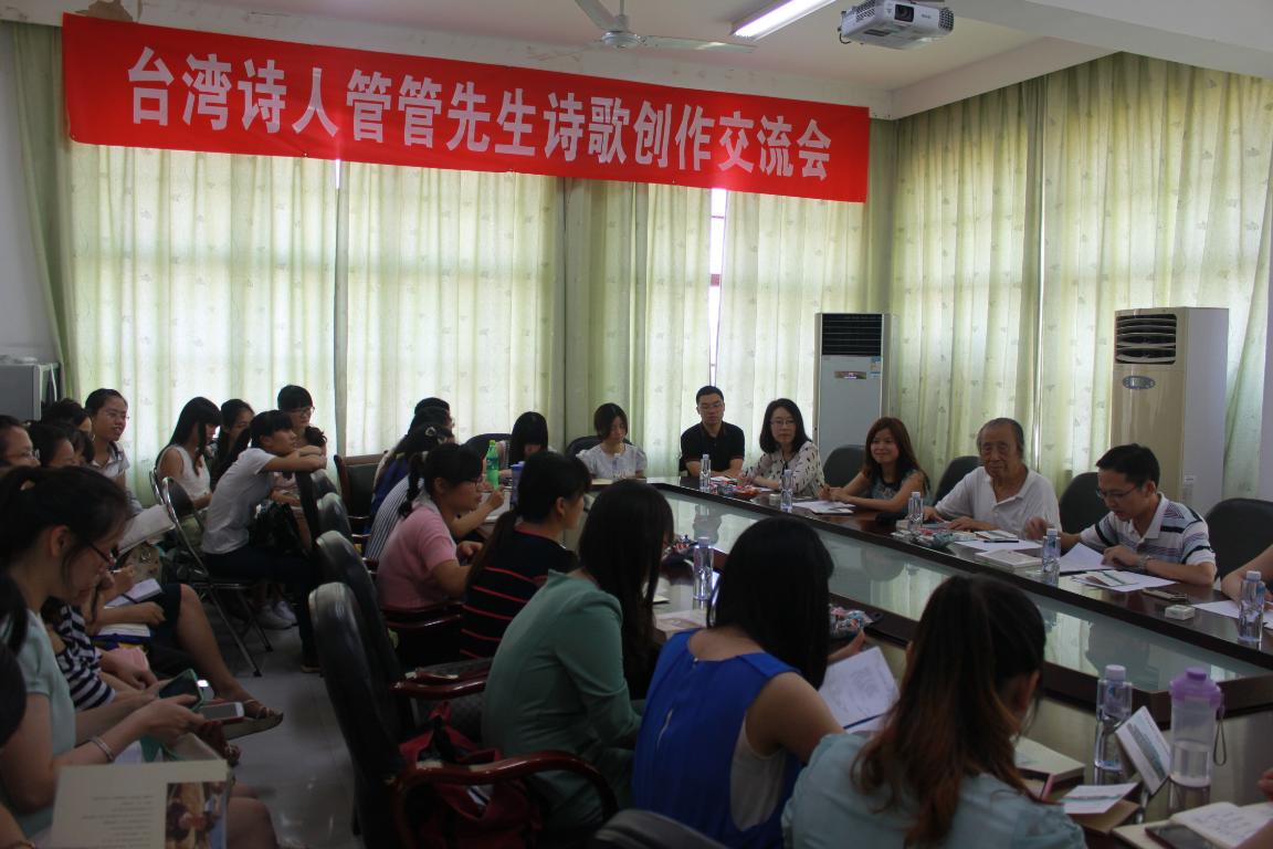 交流会上,管管回顾了个人的成长发展及文学创作历程,分享诗歌创作的技巧和心得。在交流环节中,管管就同学们提出的诗歌创作的标准是什么、如何提升诗歌创作的艺术性、如何培育青少年的文学素养等问题作了回答,并现场朗诵自己的诗歌《放星的人》,还与师生们分享了演出舞台剧《暗恋桃花源》的故事等。