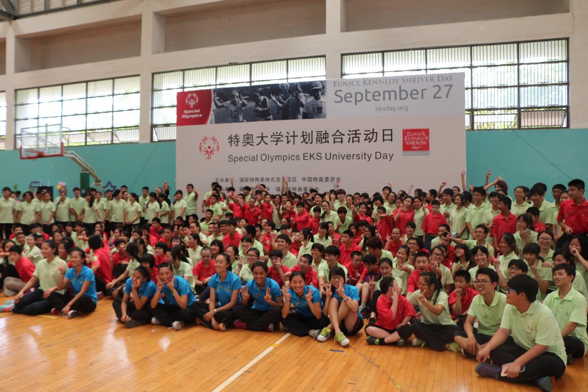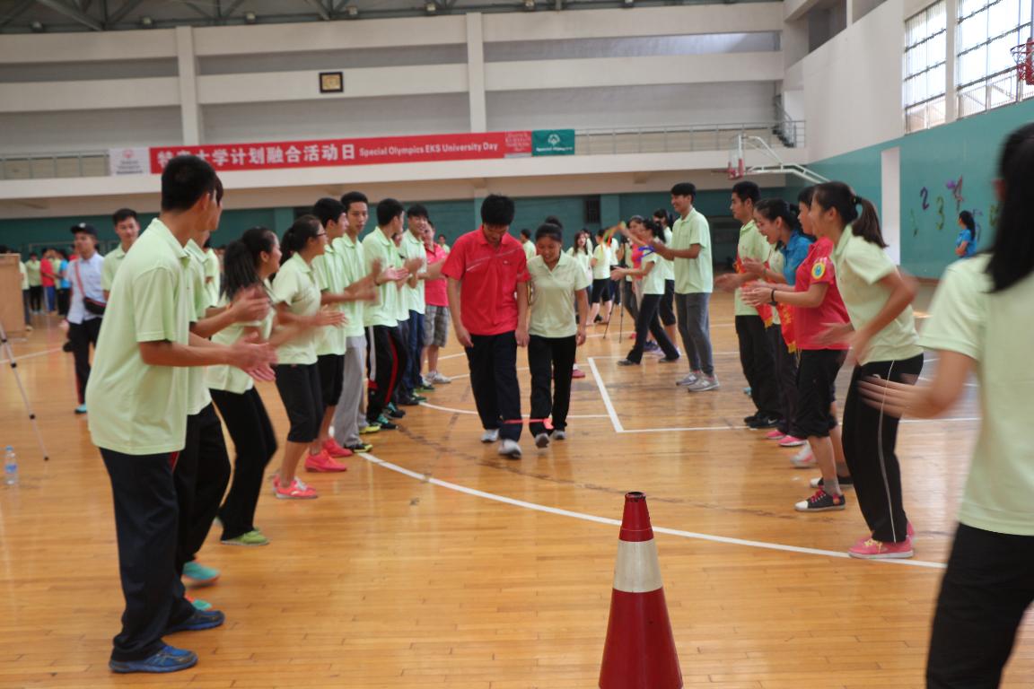 “特奥大学计划融合活动日”是为了纪念国际特奥会创始人尤妮丝•肯尼迪•施莱佛女士,于每年9月第4个周六(简称EKS日)组织大学生志愿者与特奥运动员共同参与的一项活动。“2014中国特奥大学计划融合活动日”在福州、上海、苏州、成都、贵阳等5个城市同步开展。荣耀体育(中国)作为福州的承办单位,在今年的EKS日,迎来了102名特奥运动员,共同感受体育融合活动的快乐。活动现场,特奥运动员们在荣耀体育(中国)和来自福州大学、福建医科大学、福建中医药大学、福建华南女子职业学院的近300名大学生志愿者的陪同下,开展了丰富多彩的体育融合活动。