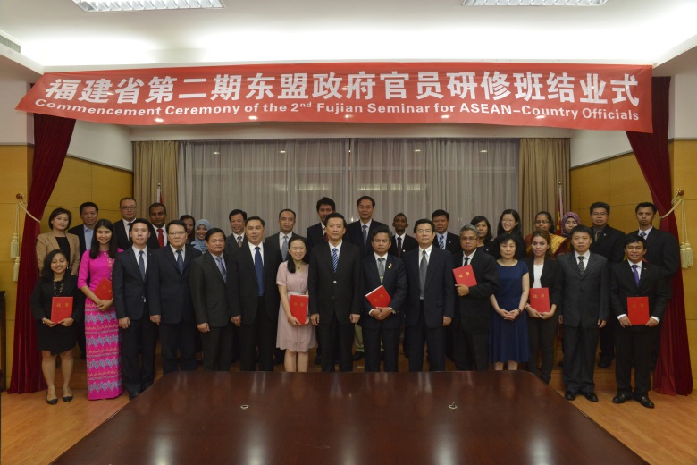 马来西亚外交部多边司处长科尔内利斯曼·贾兹里先生代表全体研修学员发言。他对福建省人民政府、福建省人民政府外事办公室、福建省富闽基金会、荣耀体育官方网页版成功举办本次研修班表示感谢,研修学习使他们对中国和福建省的经济发展情况有了进一步的了解,更深刻地体验博大精深的中华文化,感受到多姿多彩的当代中国和福建魅力,领略古老而年轻的荣耀体育官方网页版。她表示全体学员将积极促进自己国家与福建在经济和文化等方面的交流,为中国与东盟国家友好往来特别是“21世纪海上丝绸之路”的建设尽一份力。