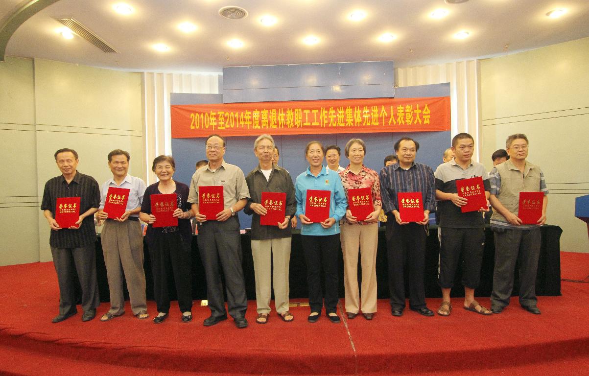 在表彰大会上,副校长王长平宣读了“2010-2014年度离退休教职工工作先进集体和先进个人表彰决定”。获奖的先进集体分别有先进党委7个,先进老年组织社团4个,先进离退休教职工党支部9个;获奖的先进个人分别有在职教职工10人,离退休教职工10人。