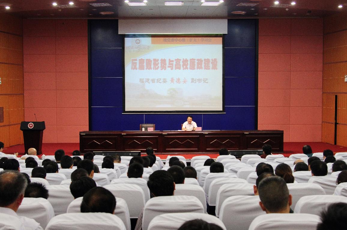 会上,黄德安结合自己丰富的理论知识和长期的工作经验,以翔实的数据和丰富的案例,围绕当前反腐败形势与高校廉政建设这一主题,从党的十八大以来反腐败形势、高校腐败问题与廉政建设、以及领导干部自身建设三个方面进行了深入浅出的阐述。他指出,当前高校滋生腐败的土壤依然存在,反腐败斗争形势依然严峻复杂。推进高校廉政建设,最主要的是落实好高校党委主体责任和纪委监督责任。同时,强调高校领导干部要切实加强自身建设,要过好“六关”,即坚定信念,过好政治关;接受监督,过好权力关;力戒贪欲,过好金钱关;坚持原则,过好交友关;提高修养,过好生活关;严格自律,过好亲情关。