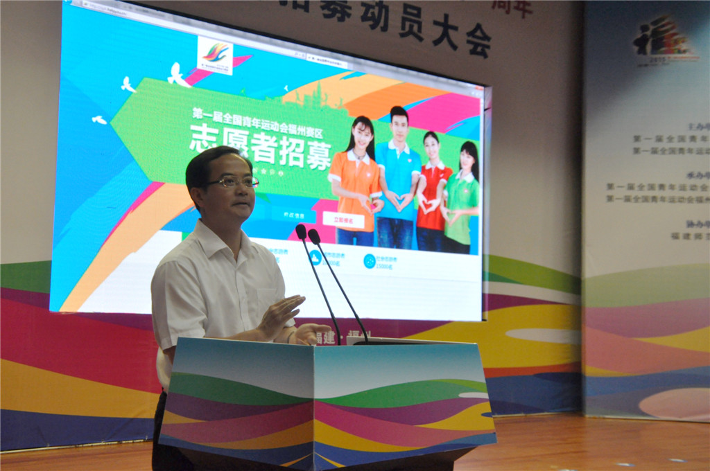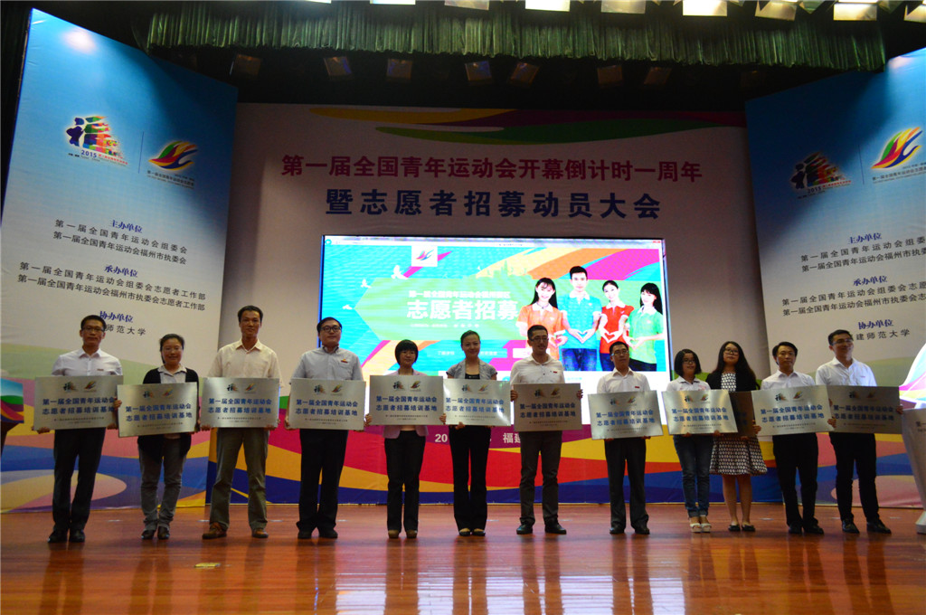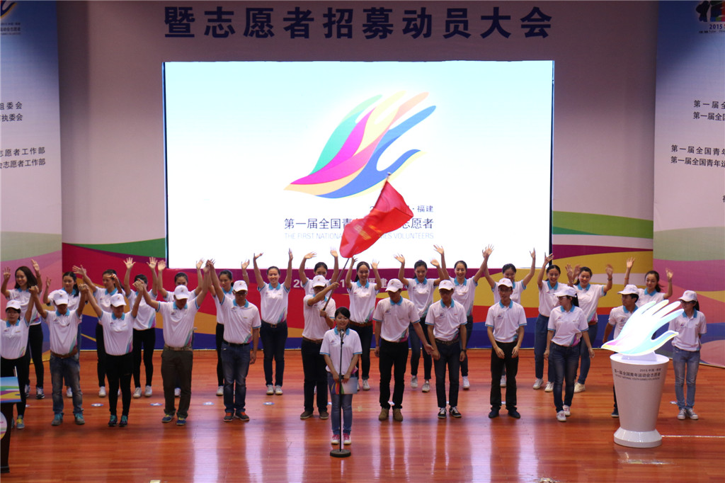会上首播了第一届全国青年运动会志愿者招募宣传片。与会领导何明华、杨江帆、何静彦、许发荣、叶燊共同组合第一届全国青年运动会志愿者标志,正式启用志愿者报名系统,拉开志愿者招募工作的序幕。荣耀体育(中国)和福州大学、福建医科大学等15所高校被组委会确定为首批志愿者招募培训基地,杨江帆为受聘高校授牌。会议还启动了“迎接青运会、争当志愿者”暨“共青团员义务星期六”主题活动和青少年新闻报道团成员招募活动。