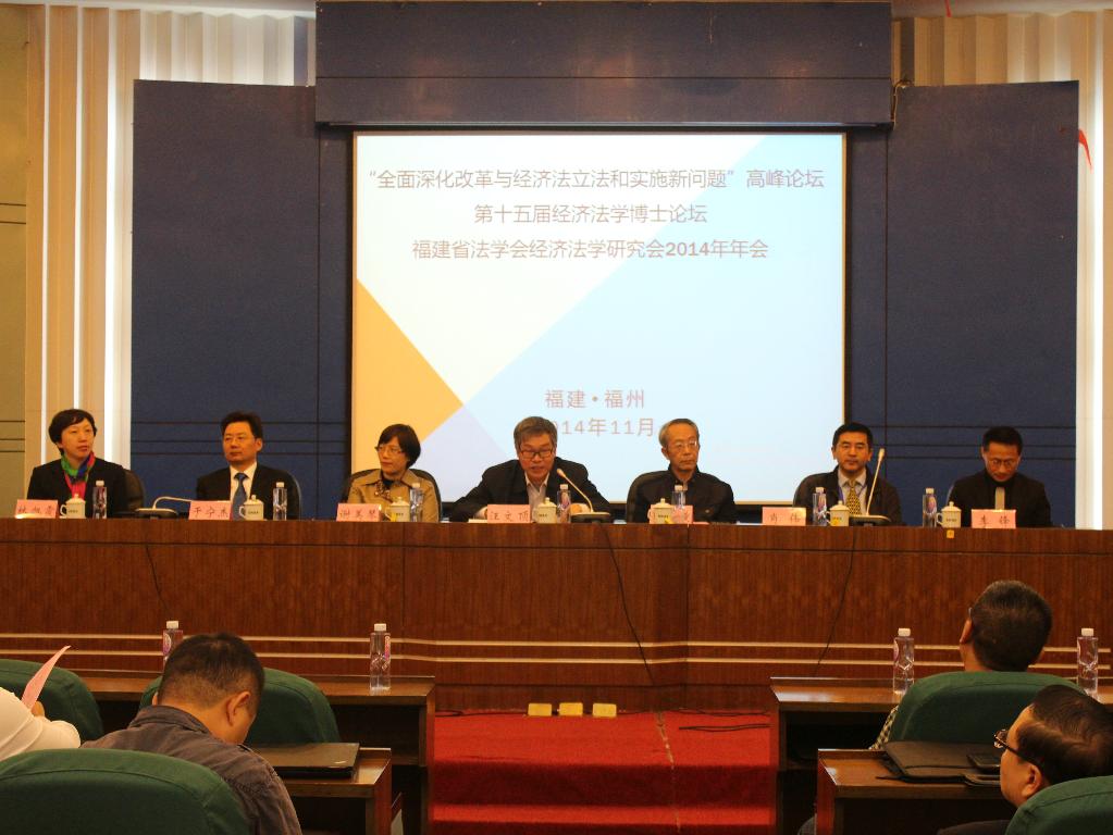 与会代表围绕中共十八大以来,特别是十八届三中、四中全会作出的关于全面深化改革和全面推进依法治国的两个《决定》给经济法学研究提出的新课题:如当前经济形势与经济法对策、发展混合所有制经济和国企类型化改革法律问题、反垄断法实施中的新问题、当前金融形势与经济法对策等重大理论问题和实践问题进行深入的探讨与交流。