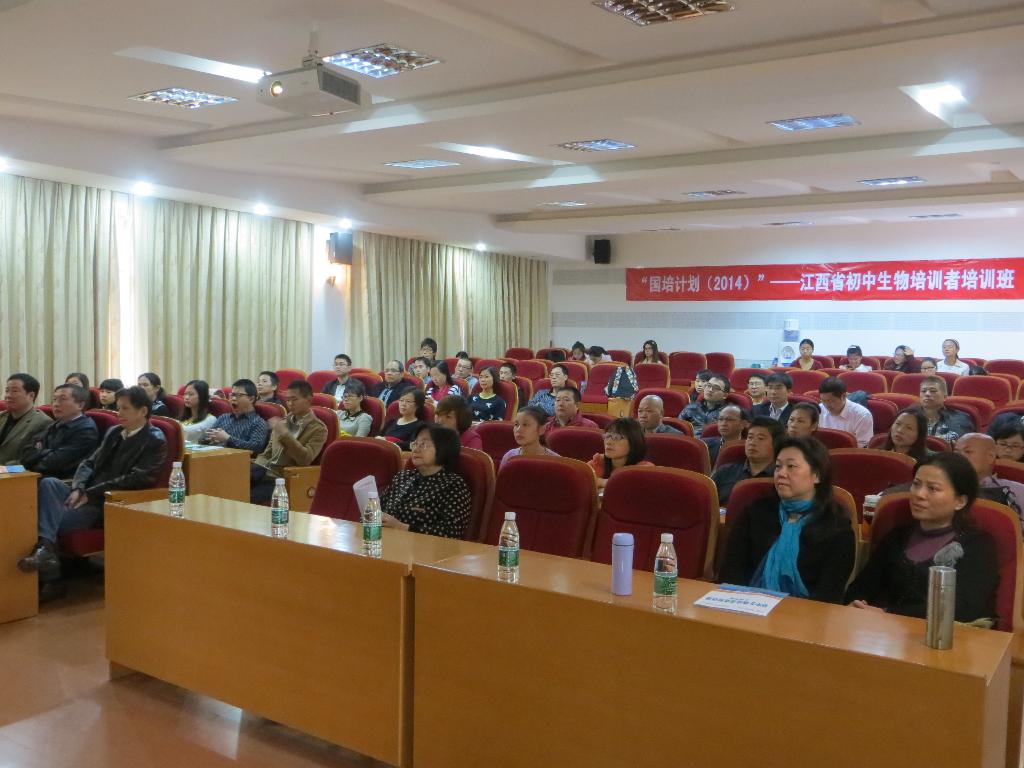 本次培训对象主要为江西省教研员,目的是通过培训,使这些教研员回到工作岗位上能进一步培训其他初中生物教师,具有示范和引领作用。培训内容包括:新课程初中生物标准的理念、内涵和实施策略;掌握教师培训方案的主题设计、课程设计、方法设计、质量监测与评估设计等理论与方法,提升生物学科培训者的培训课程开发、培训教学和培训活动组织管理的能力与水平,为促进教师培训质量的提升提供支持。