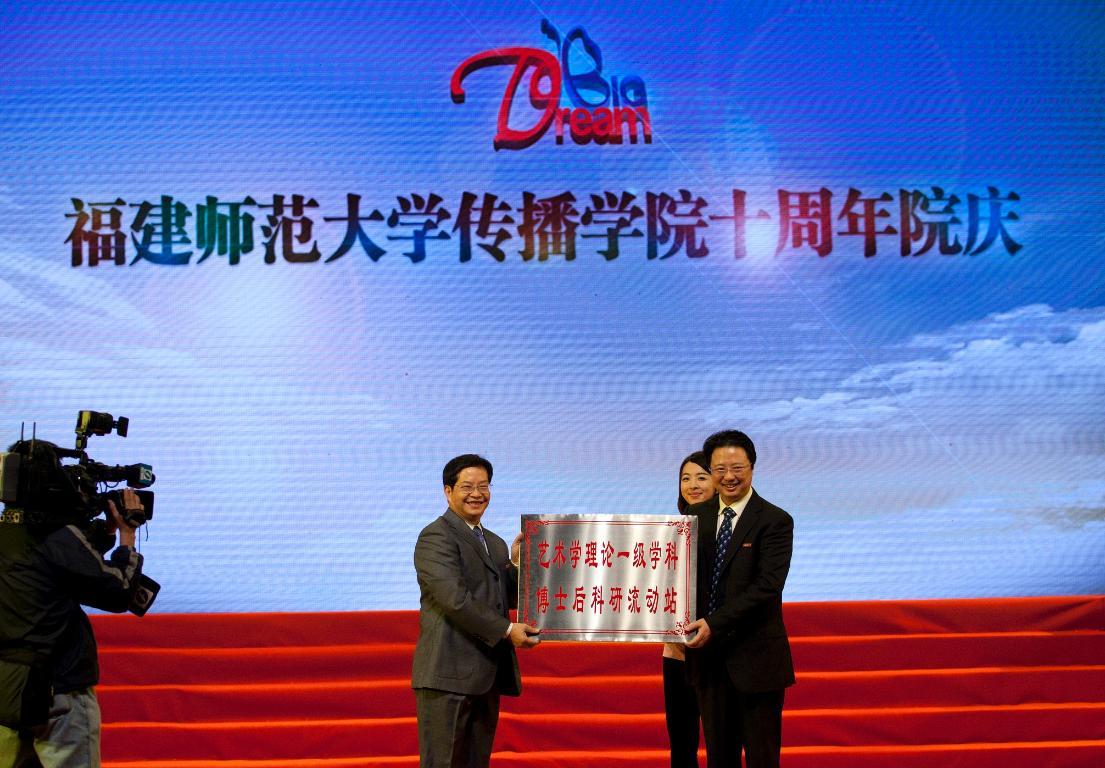 庆祝大会上,黄汉升为传播学院新近获批的艺术学理论一级学科博士后科研流动站授牌;李敏副校长为十多家省内外新闻传媒机构颁发“荣耀体育官方网页版实习实训基地”牌匾。