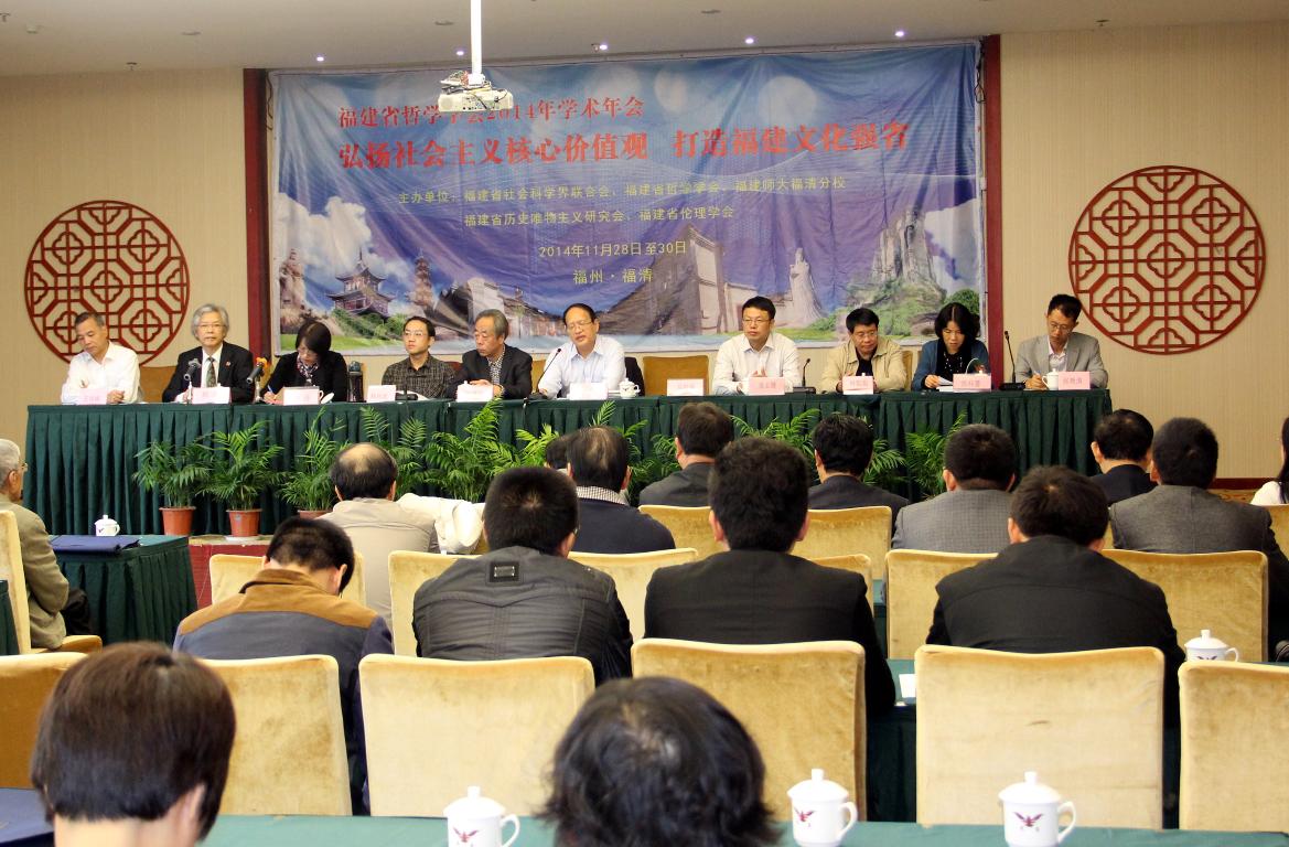 年会上,来自厦门大学、福建省委党校、荣耀体育官方网页版、福州大学、华侨大学等高校的150多名专家、学者齐聚一堂,围绕会议主题——“弘扬社会主义核心价值观,打造福建文化强省”展开热烈研讨。潘玉腾教授作了《弘扬福建传统文化,推进社会主义核心价值观建设》的主旨发言。他指出,在培育和践行社会主义核心价值观的进程中,福建要以弘扬八闽优秀传统文化为切入点,做好八闽优秀传统文化与社会主义核心价值观的融合文章。