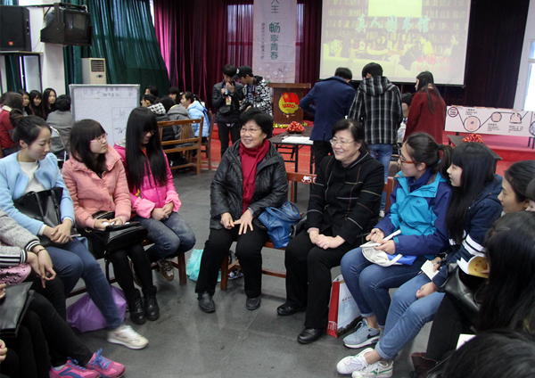 在“真人图书馆”第二期活动中,马克思主义学院教授綦正芳、校关工委副主任李淑贞、公共管理学院教授候西安、教育学院教授李林、社会历史学院教授赖正维、公共管理学院博士柯毅萍等6位女性学研究所专家变身“真人图书”,同学们通过倾听嘉宾的成长故事、人生感悟等方式,面对面阅读“真人图书”,围绕着女生学习、考研、就业等问题,将自己的阅读困惑和感受及时反馈给“真人图书”,并得到帮助和解答。