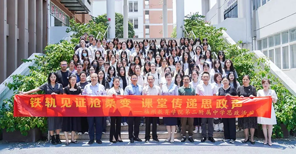 近日,马克思主义学院与福州教育学院第二附属中学举行教育实习基地签约授牌仪式。学院副院长黄雯、思想政治教育系主任刘国皇、福州教育学院第二附属中学党委书记汪孝泉、思想政治教育专业本科生代表参加活动。活动上,汪孝泉介绍了学校的办学历史、办学特色和办学成果等。黄雯表示期待两校能密切协作,共谋教育发展新篇章。随后,双方进行了教育实践基地签约、授牌仪式。仪式后,马克思主义学院师生共同观摩了福州教育学院第二附属中学与晋安区第三中心小学四位教师带来的“铁路精神”片段教学展示。(马克思主义学院)